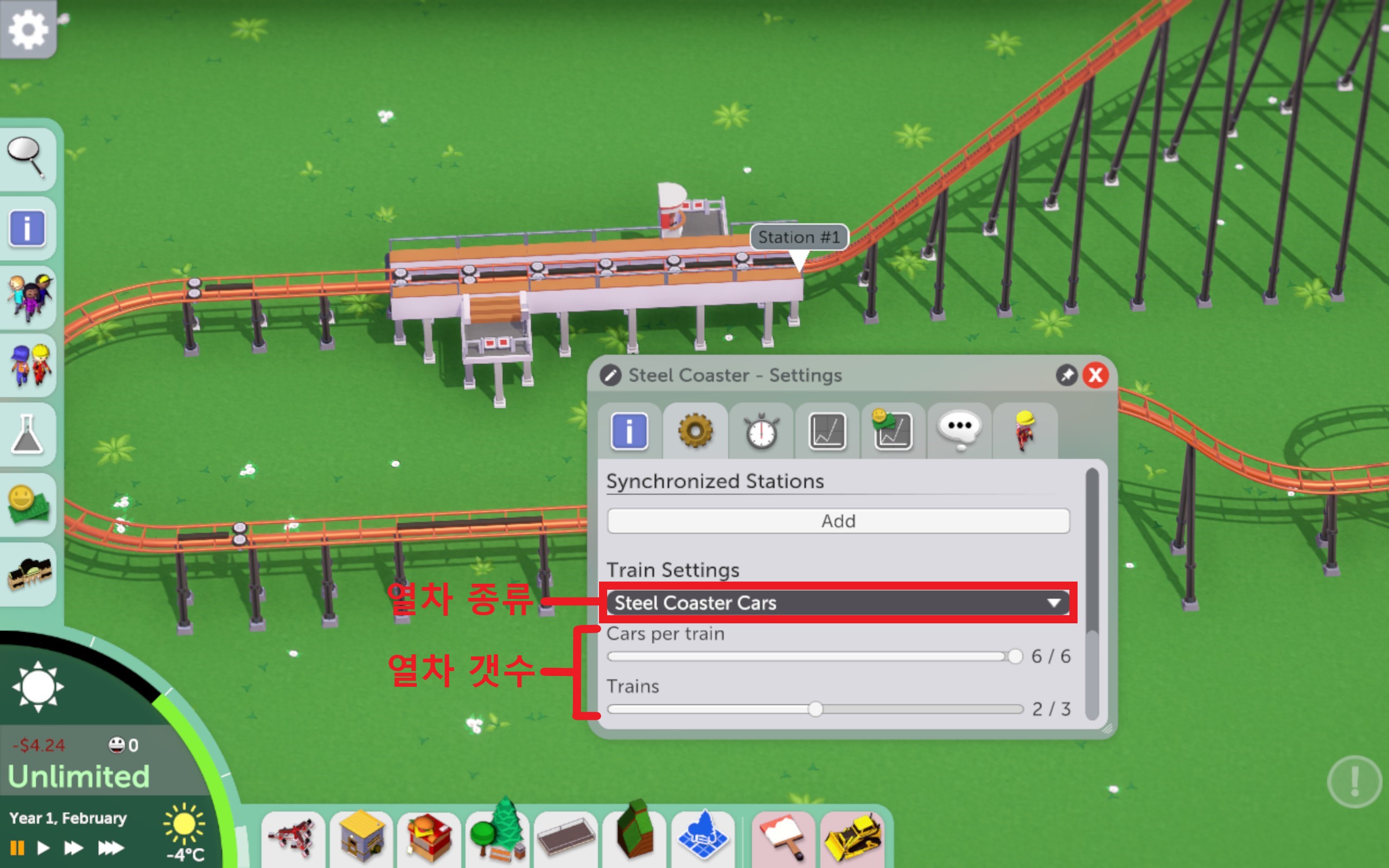 열차 종류와 1대당 몇량을 달 것인지, 그리고 열차를 몇대 굴릴지를 결정합니다.
