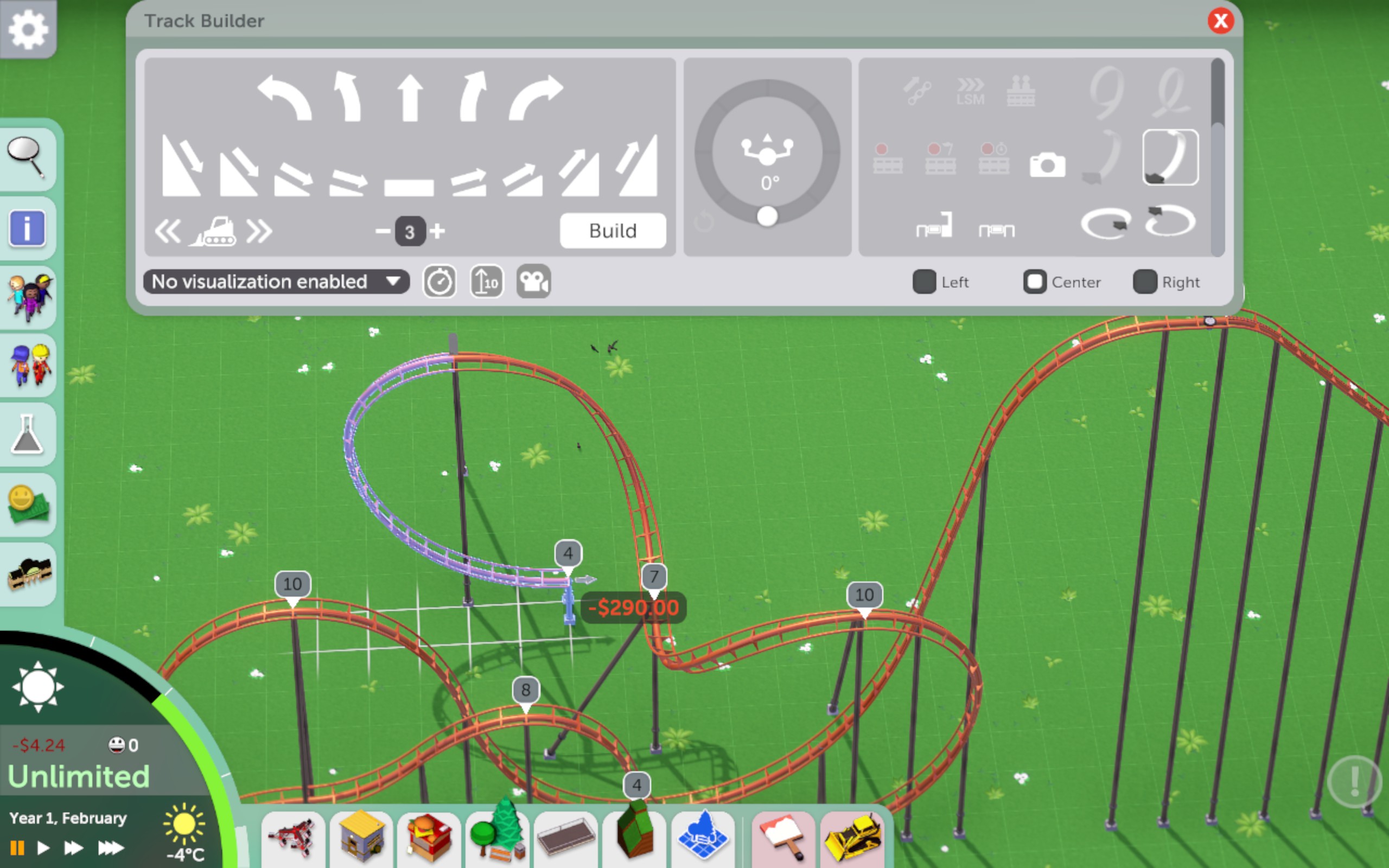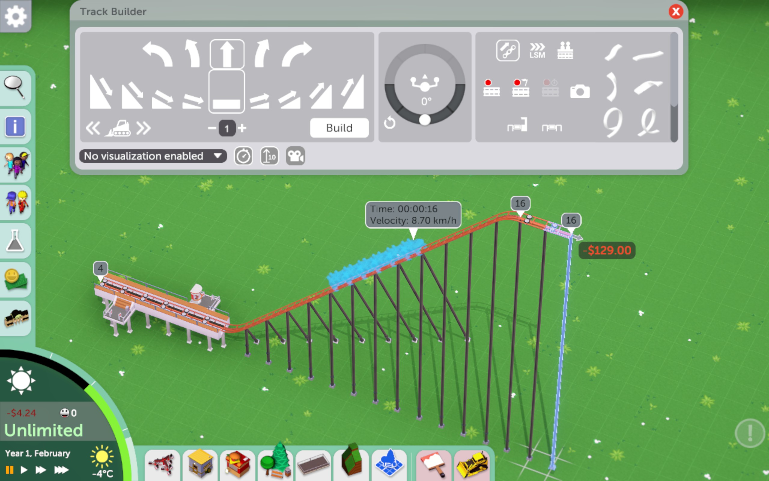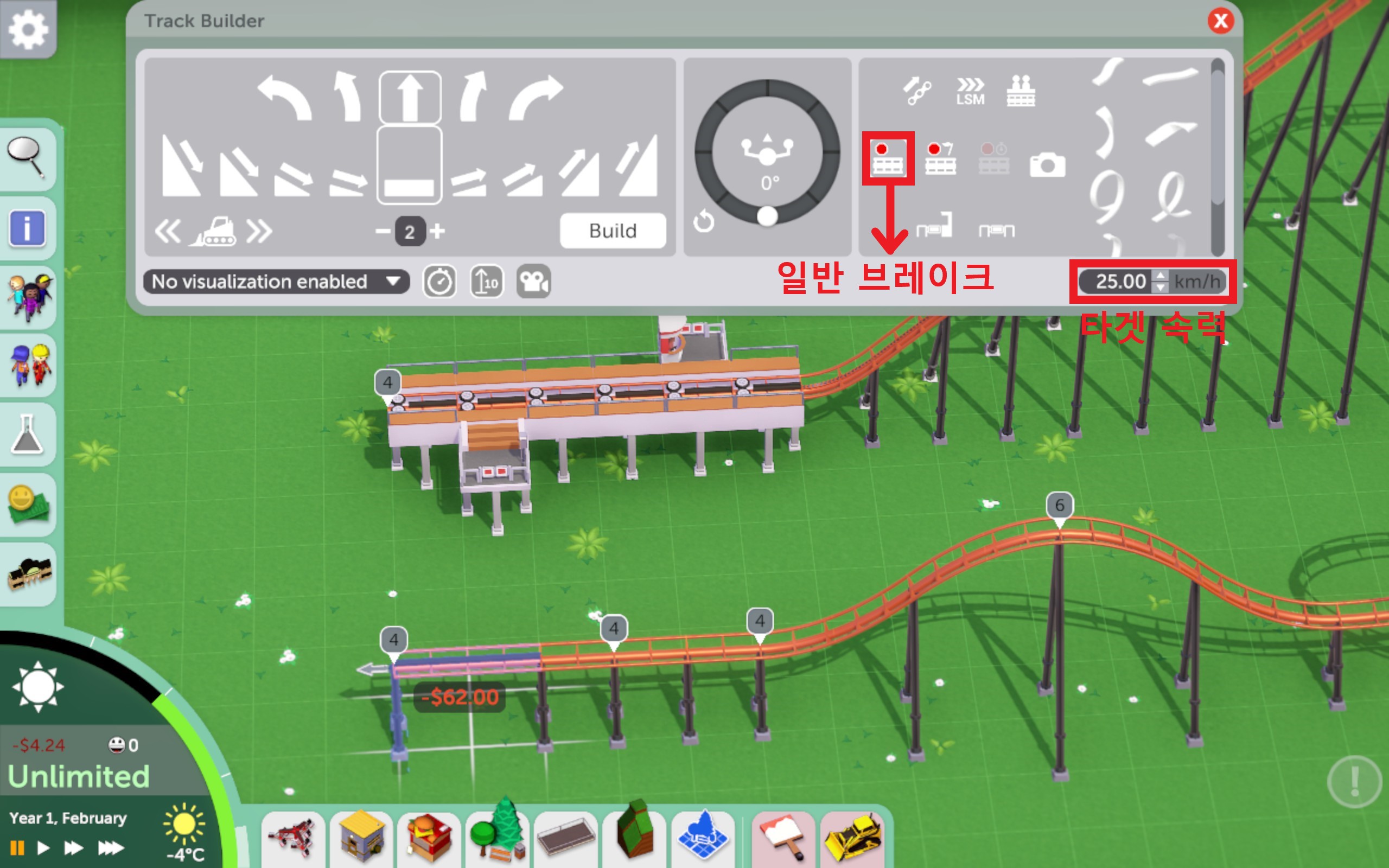 그리고 롤러코스터 트랙 건설 창이 아래와 같이 뜹니다.