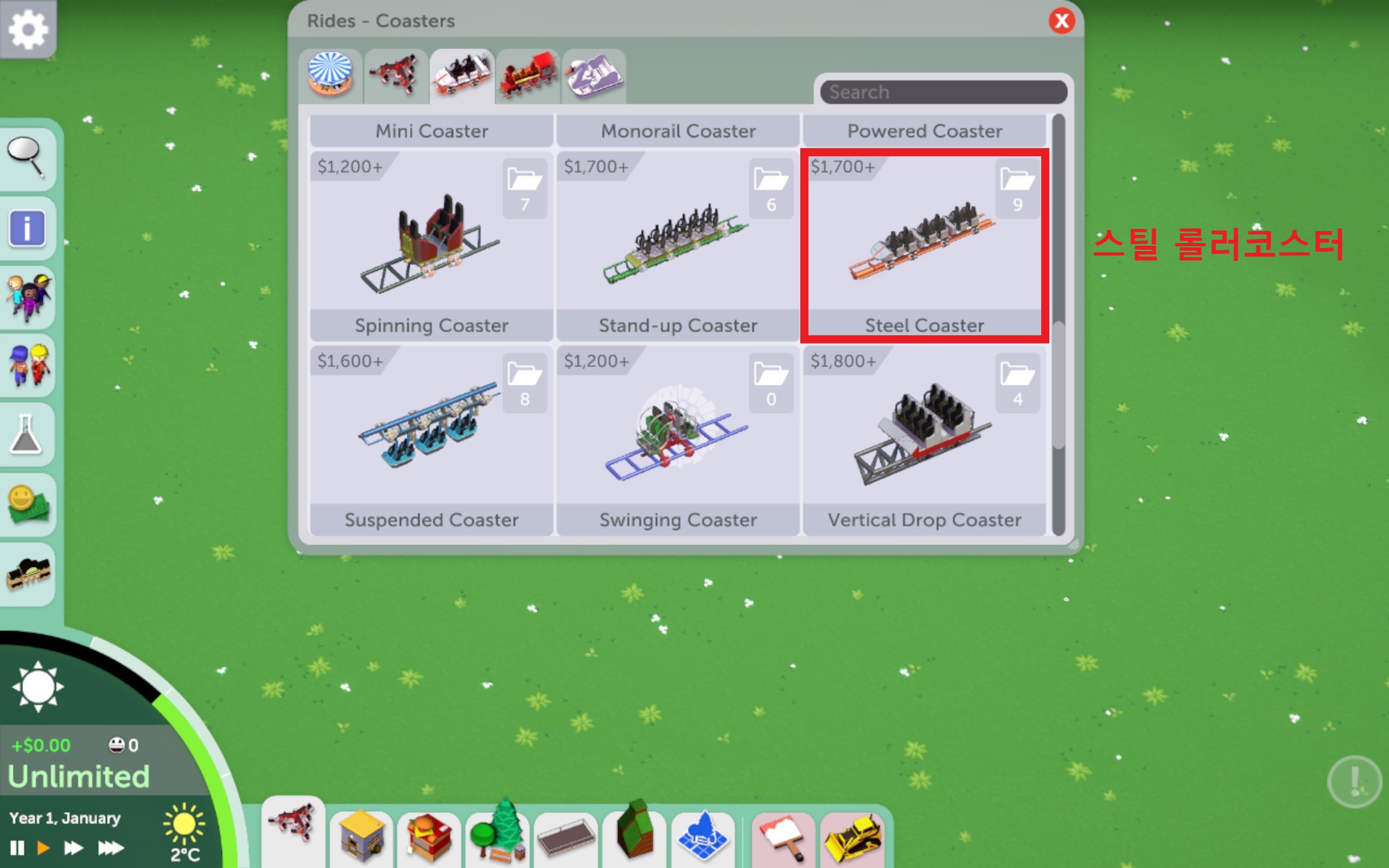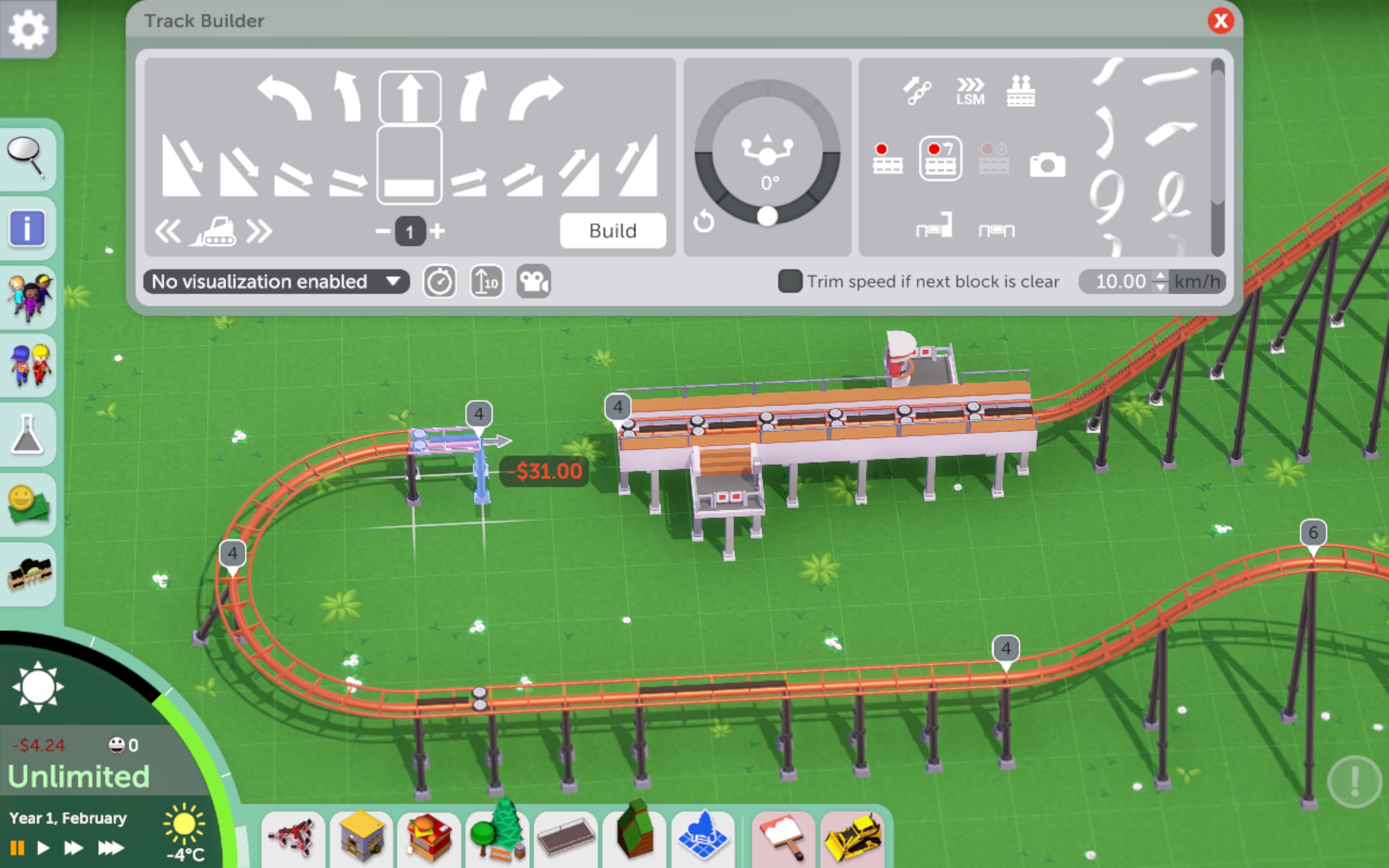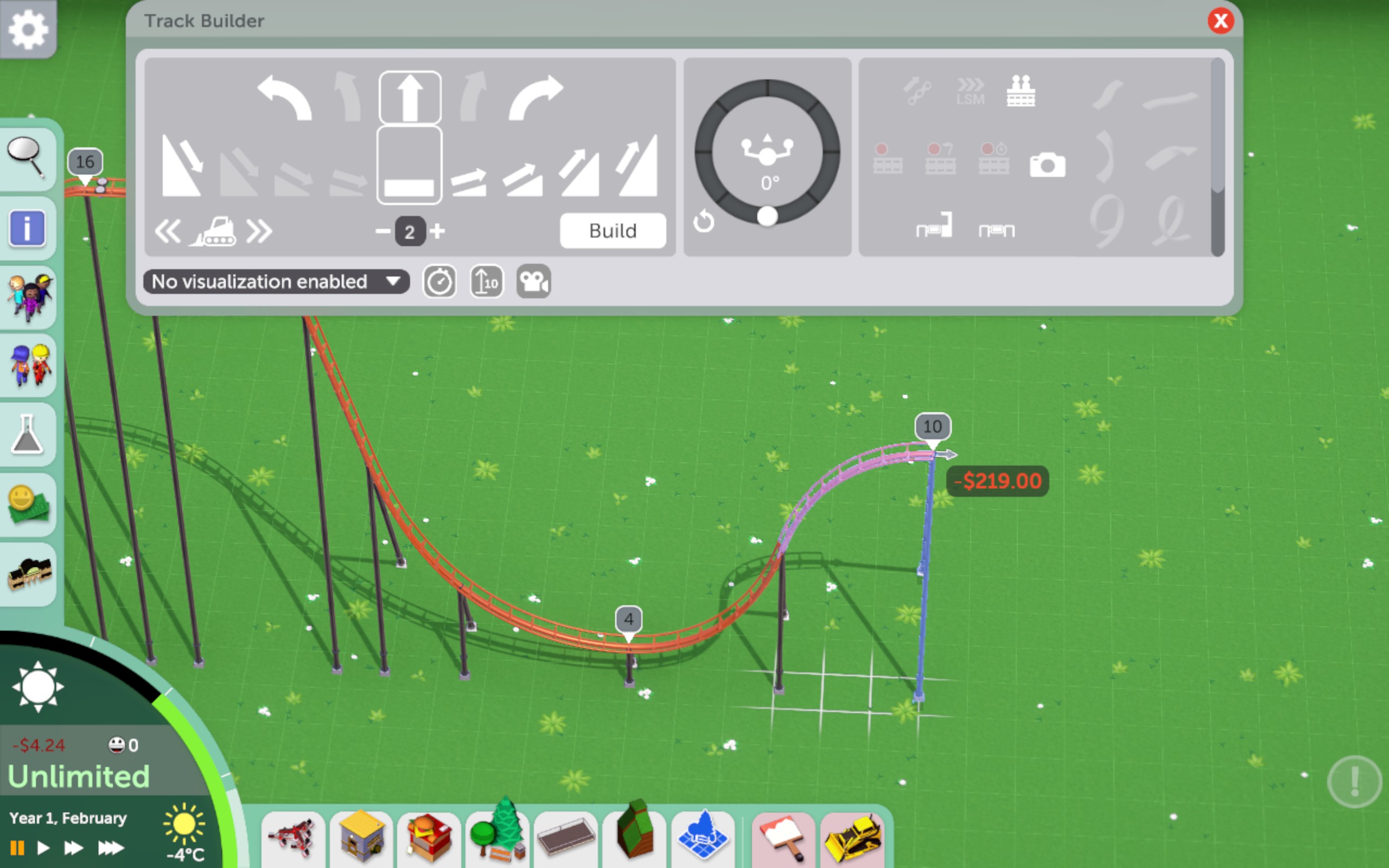 그리고 롤러코스터 트랙 건설 창이 아래와 같이 뜹니다.