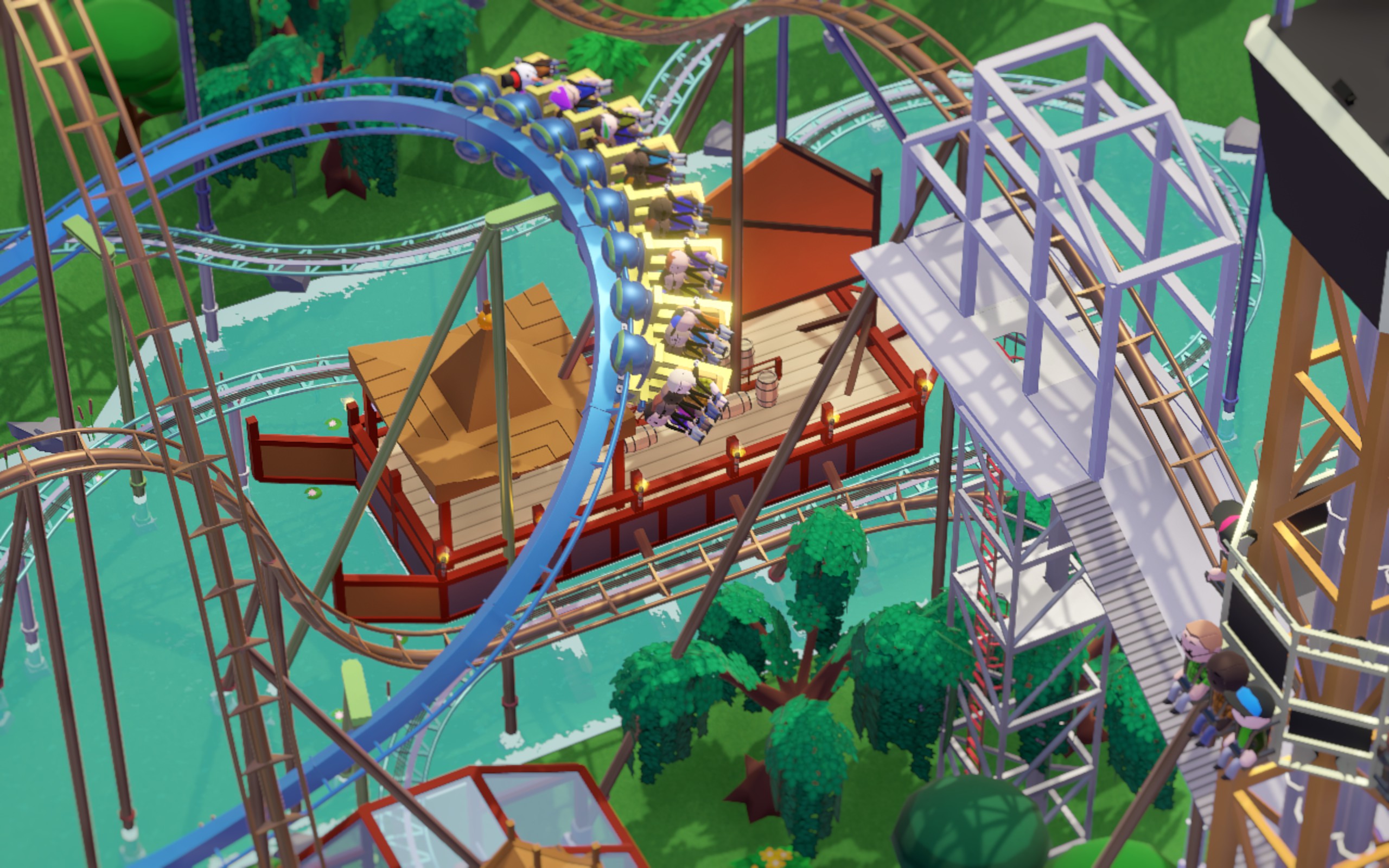 마지막으로 인버티드 스피닝 롤러코스터입니다. 롤러코스터 타이쿤3의 스피닝 스틸 같은 기종인가본데 차량의 회전을 마음대로 컨드롤할수는 없고, 커브를 돌거나 할때 스스로 회전하는 방식인것 같습니다.