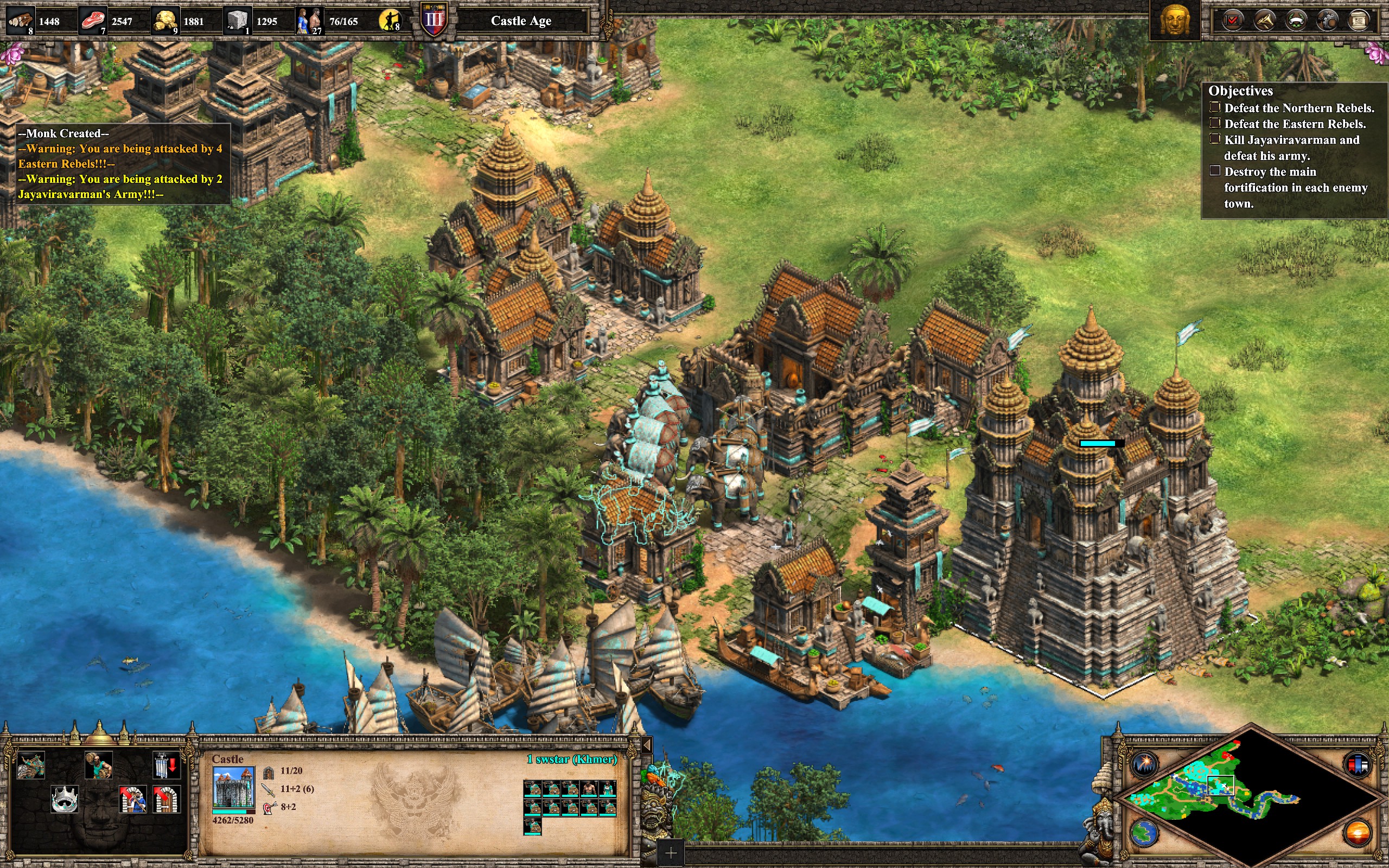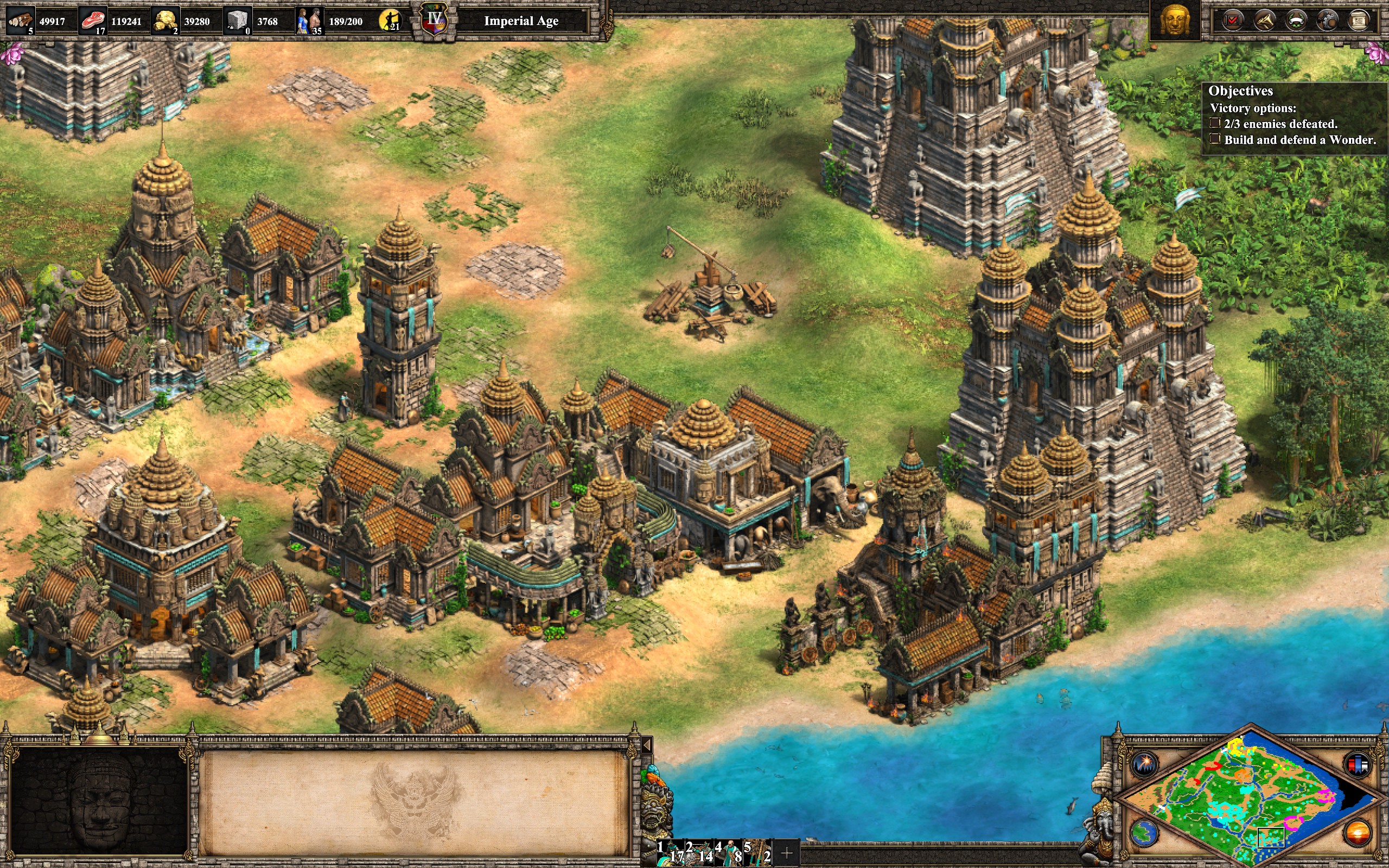 주변국들과 크메르 반란군의 다구리를 극복하고 역관광보내는 미션입니다. 5개의 적 세력중에 3개를 쓸어내거나 불가사의를 짓고 일정기간동안 지키면 승리할 수 있습니다. 5개의 적들은 각각 다른 유닛조합을 동원하여 공격해 옵니다.