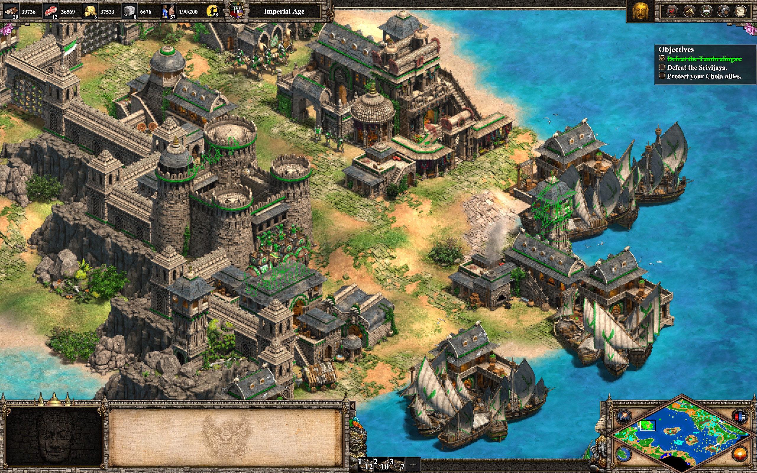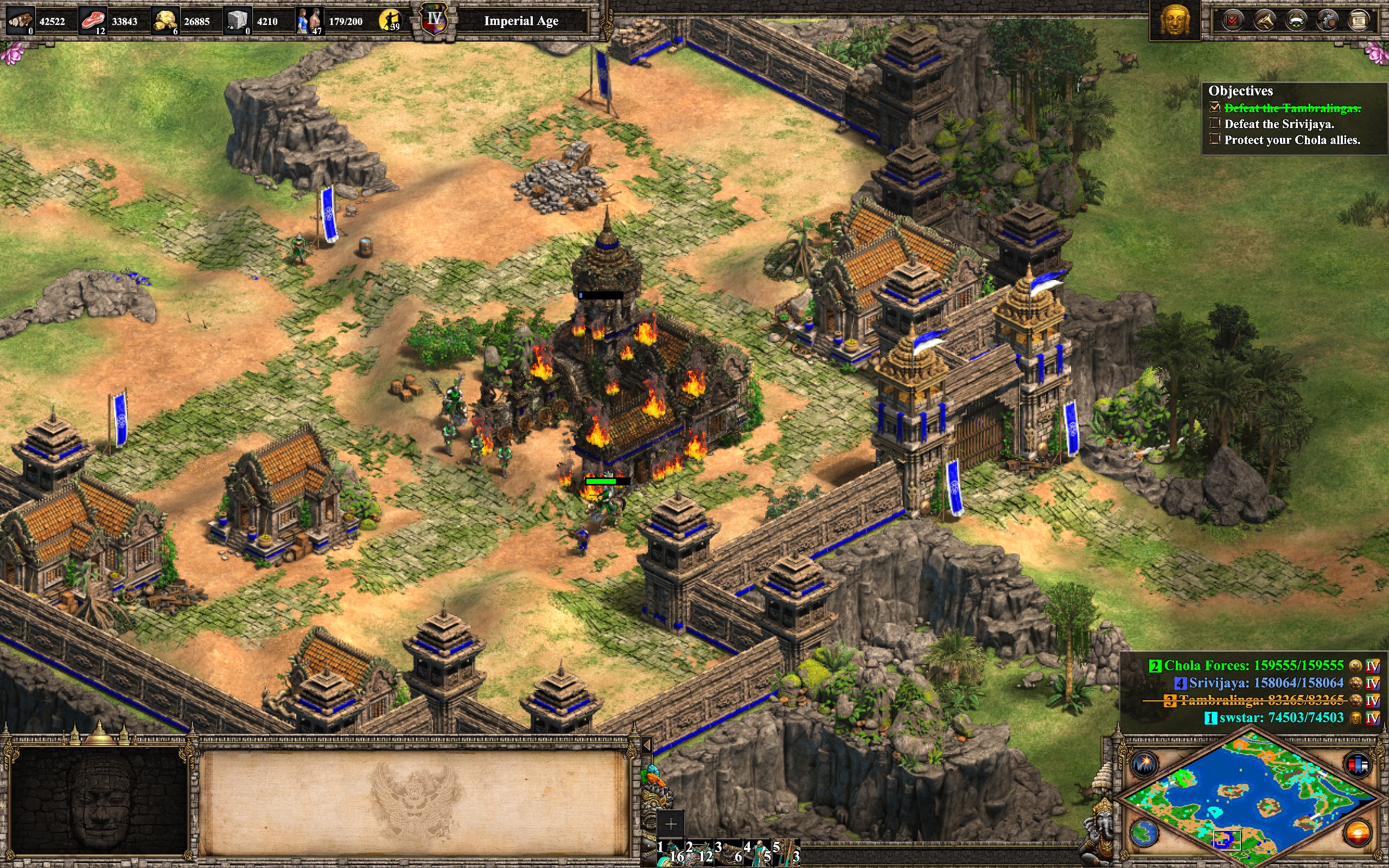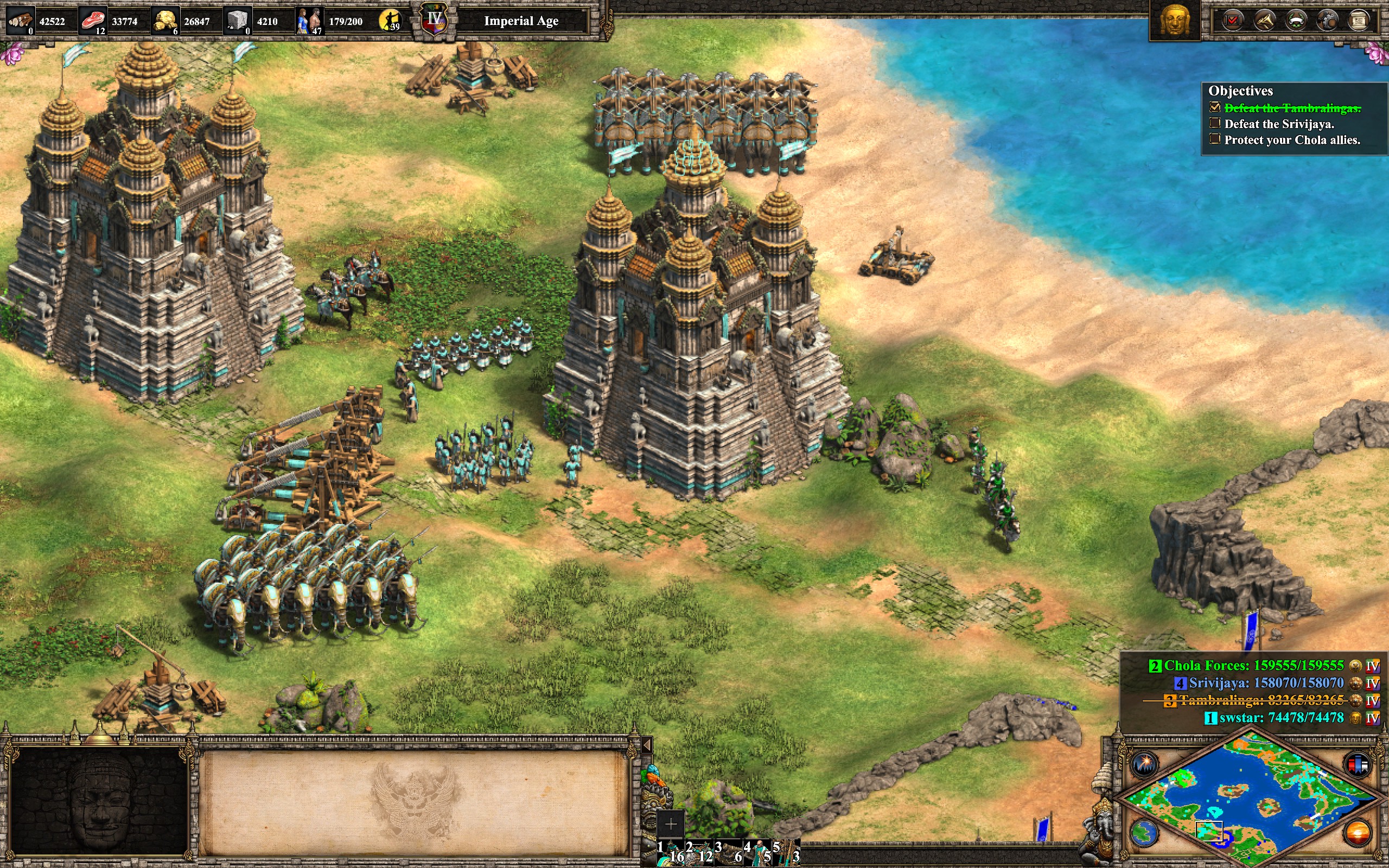 스리위자야까지 박살내고 나면, 스리위자야의 해상 패권조차도 크메르-촐라 동맹의 적수가 될 수는 없다는 수리야바르만 1세의 대사가 뜨면서 미션이 완료됩니다. 그리고 스리위자야와 탐브라링가의 점수가 저보다 높은 이유는 아마도 자원치트 때문일 것 같습니다?