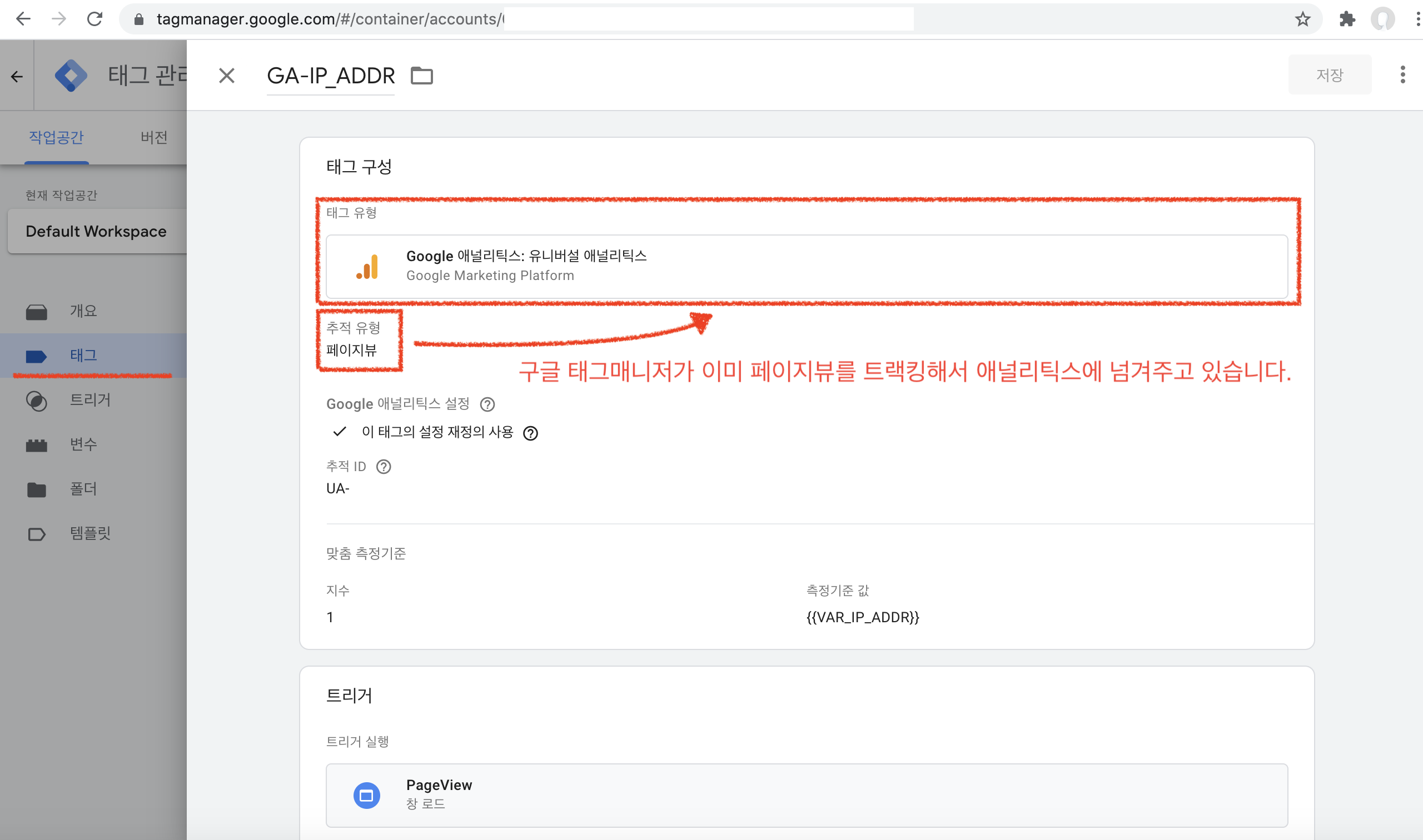 블로그에 애드센스를 설치하신 분들이 무효클릭 공격 등에 대한 대책으로 IP추적을 하고, 이를 위해서 구글 태그매니저를 많이 사용하십니다. 그 과정에서 페이지뷰를 추적하는 애널리틱스 태그를 설정하는데요. 문제는 이 태그가 페이지뷰에 대한 정보를 애널리틱스에 전달하기 때문에, 애널리틱스가 자체적으로 카운트하는 페이지뷰와 겹쳐서 중복집계가 발생할 수 있다는 점입니다.