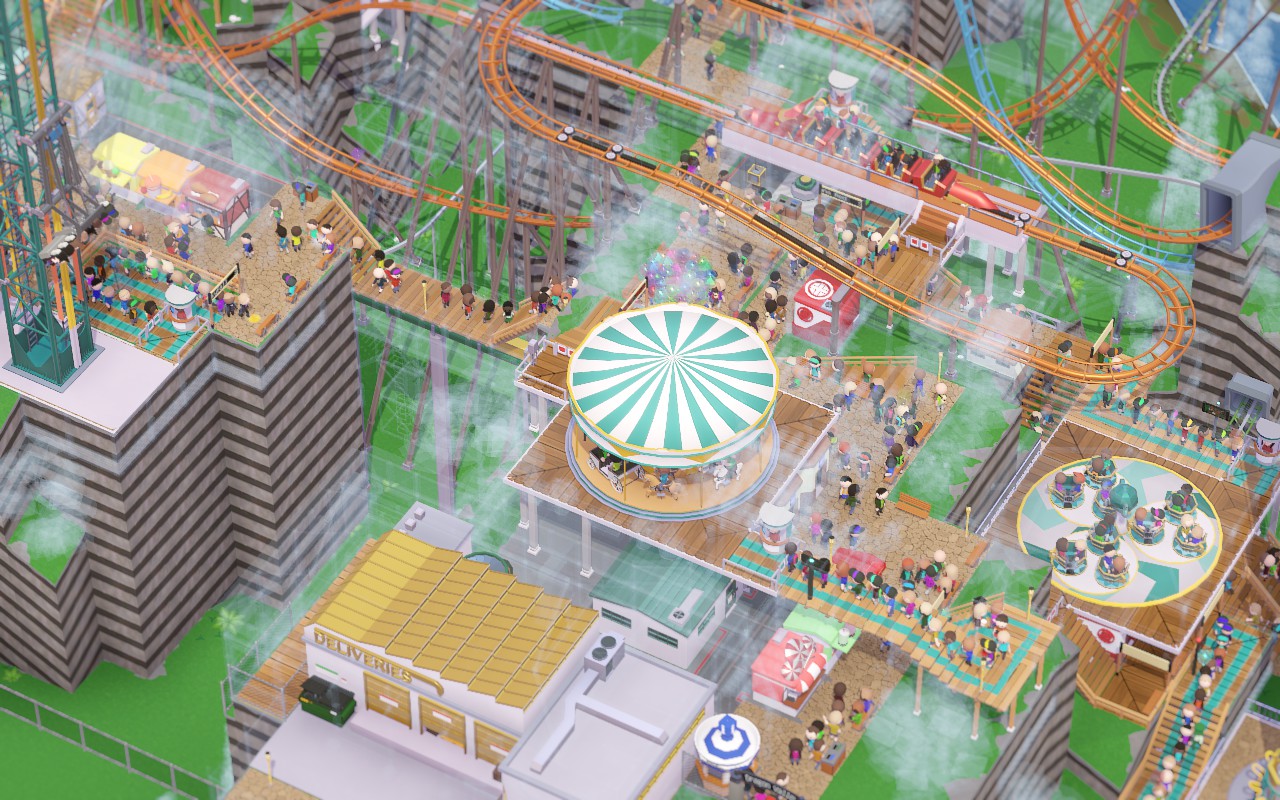 목표는 800명 이상의 손님을 유치하고 체험수치 80%를 3년 1월까지 달성해야 합니다. 일시정지 상태에서 건설이 가능하기 때문에, 롤러코스터 트랙을 구상하는데 있어서 부담이 없습니다. 반면에 트랙형 놀이기구의 높이 제한 때문에, 절벽 위에 짓는게 불가능한 경우도 있는게 난점입니다.